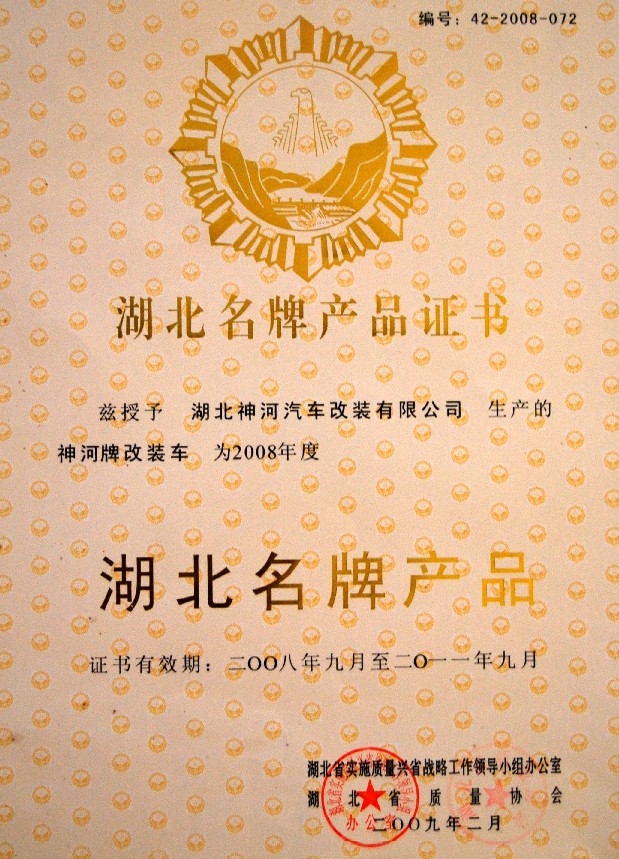 湖北名牌產(chǎn)品證書2009.2